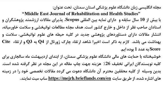 اطلاعیه دانشگاه  علوم پزشکی سمنان به منظور پذیرش مقاله در مجله توانبخشی و سلامت خاورمیانه به شرح ذیل می باشد.