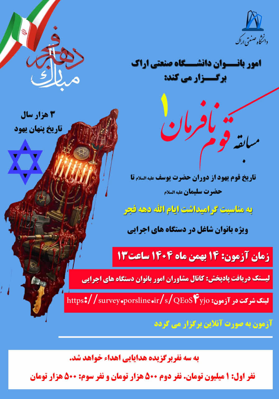 مسابقه قوم نافرمان ۰۸ بهمن ۱۴۰۴ | ۱۰:۳۹ کد : ۵۷۷۴۳ اطلاعیه ارسال به دیگران نام شما ایمیل شما ایمیل دریافتکننده ارسال انصراف تعداد بازدید:۸۹ برگزاری مسابقه قوم نافرمان، در ایام الله دهه فجر